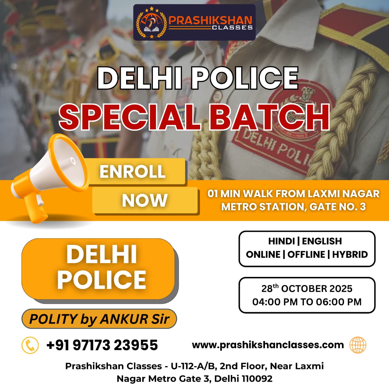Prashikshan IAS – U-112-A/B, 2nd Floor, Near Laxmi Nagar Metro Gate 3, Delhi 110092